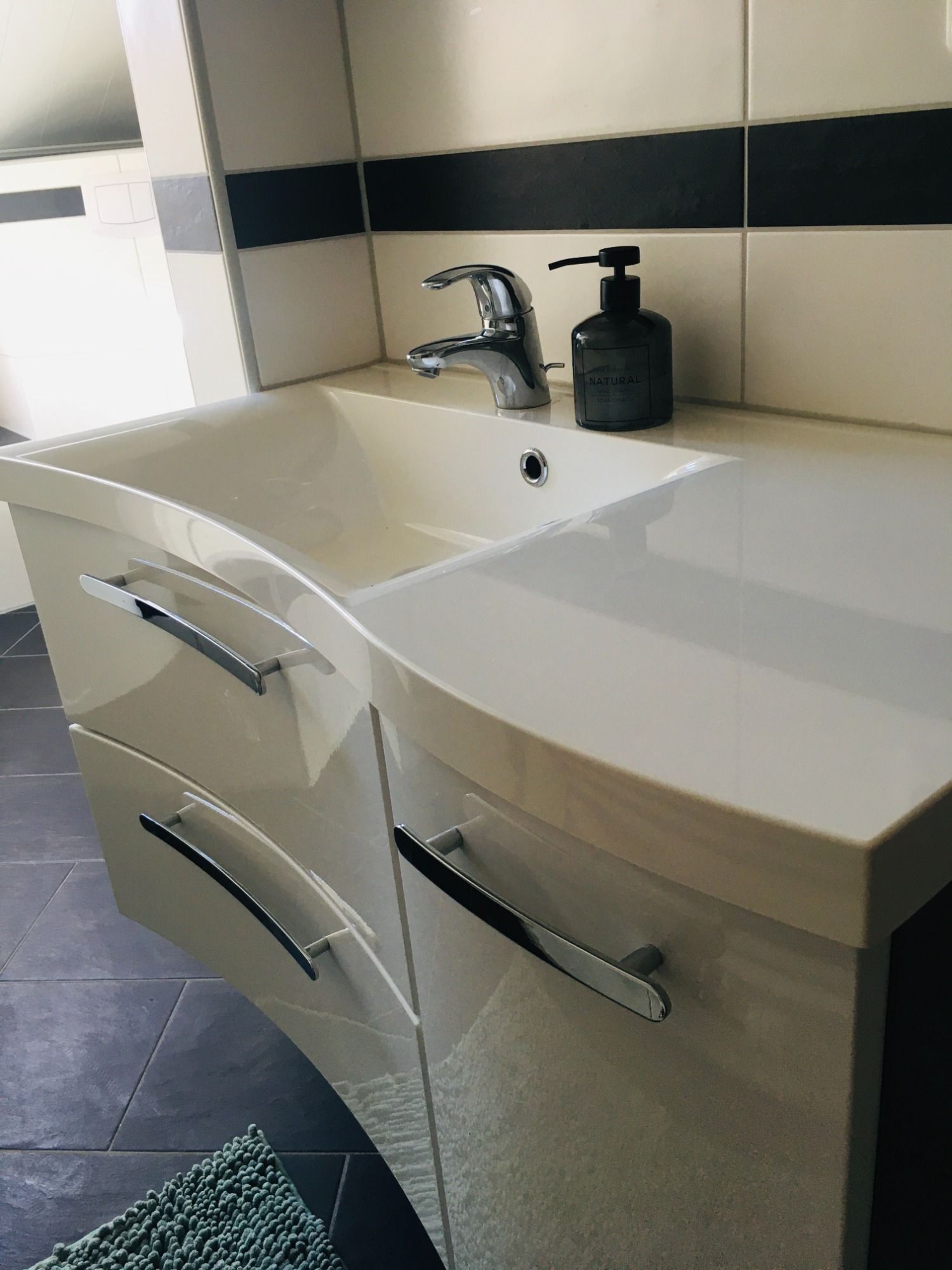 Lichtdurchflutetes Badezimmer, mit Badewanne, ebenerdiger Dusche und Toilette. Handtücher werden von uns bereit gestellt. Genauso wie Duschgel und Shampoo + kleines Notfallequipment